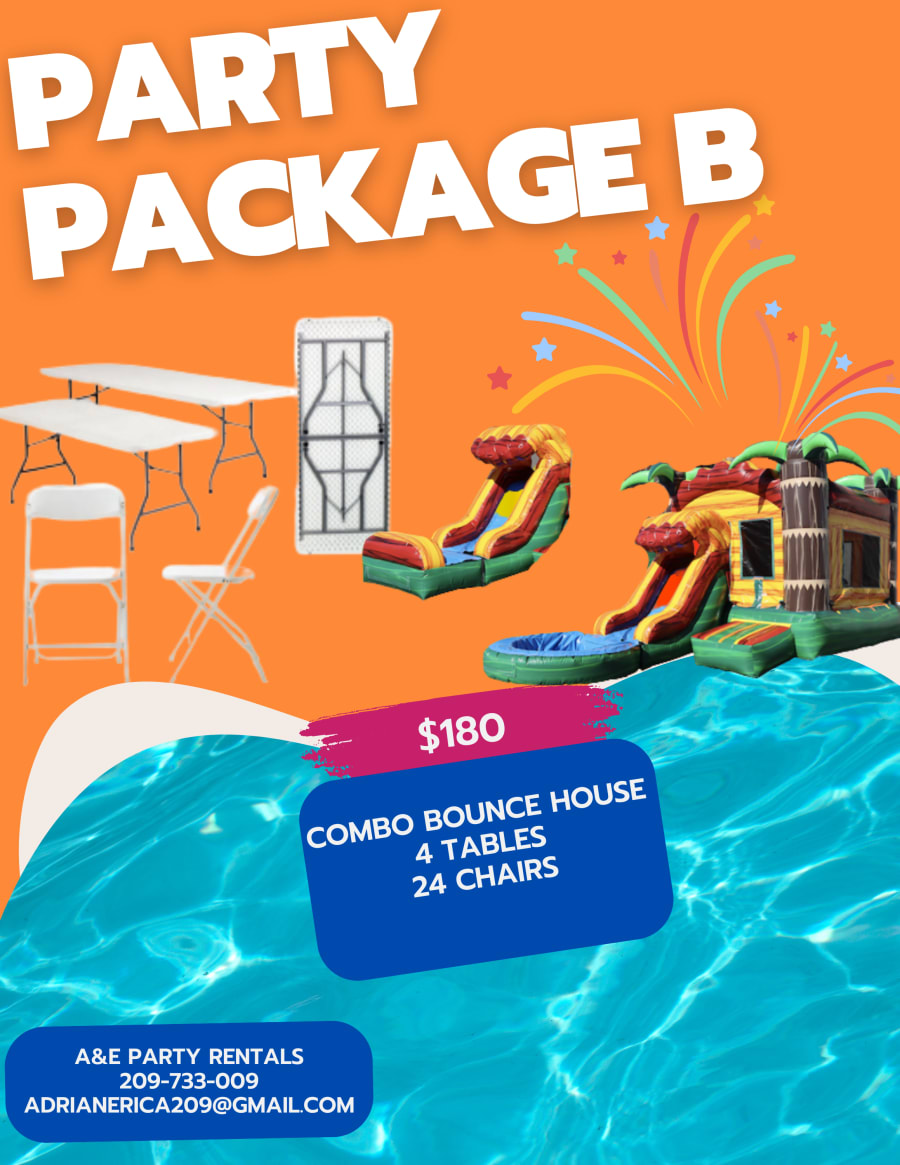 “Bounce into Fun: Combo Bounce House, 4 Tables, 24 chairs and $28 Off!”
