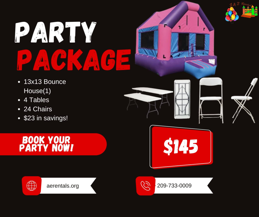 “Bounce into Fun: 13x13 House, 4 Tables, and $23 Off!”
